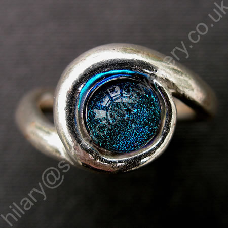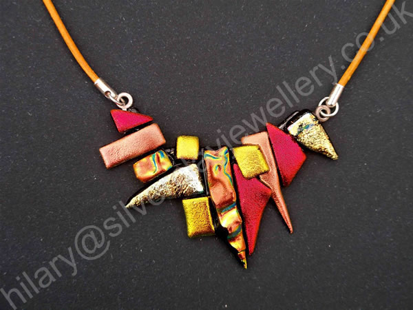 WHAT IS DICHROIC GLASS? This is glass which has been coated with metallic oxides so that it reflects and refracts light of different colours. This gives it an iridescent quality - a bit like peacock feathers - so it makes beautiful jewellery. |
