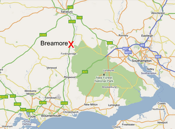 Click on the map (left) to enlarge or enter Breamore into Google maps.